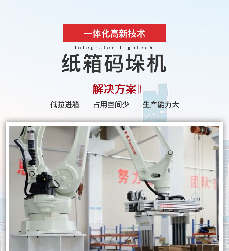 介紹:頂升抓取機(jī)構(gòu)帶有置中、疊包功能,可配合前疊包平衡碼垛效率;專業(yè)設(shè)計(jì)的紙板夾具帶有鉤,可夾取放置一層或兩層紙箱防掉落;機(jī)器人采用四軸式Kawasaki機(jī)械手臂兼顧性能與成本,將紙箱按自定義的垛型自動(dòng)碼放到托盤上。 產(chǎn)品別稱:抓取紙箱碼垛機(jī)器人、紙箱碼垛生產(chǎn)線、紙箱碼垛機(jī)器手、全自動(dòng)紙箱碼垛機(jī)器人、單立柱紙箱碼垛機(jī)、單立柱紙箱碼垛機(jī)、紙箱碼垛機(jī)機(jī)器人、機(jī)器人紙箱碼垛機(jī)、紙箱碼垛機(jī)、自動(dòng)流水線紙箱碼垛機(jī)、紙箱碼垛設(shè)備