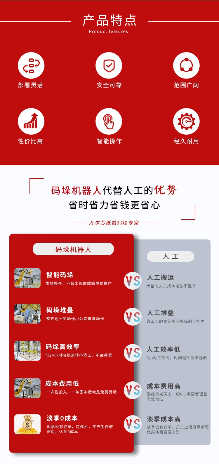 與傳統(tǒng)的機(jī)器人相比,協(xié)作碼垛機(jī)器人具有以下特點(diǎn):