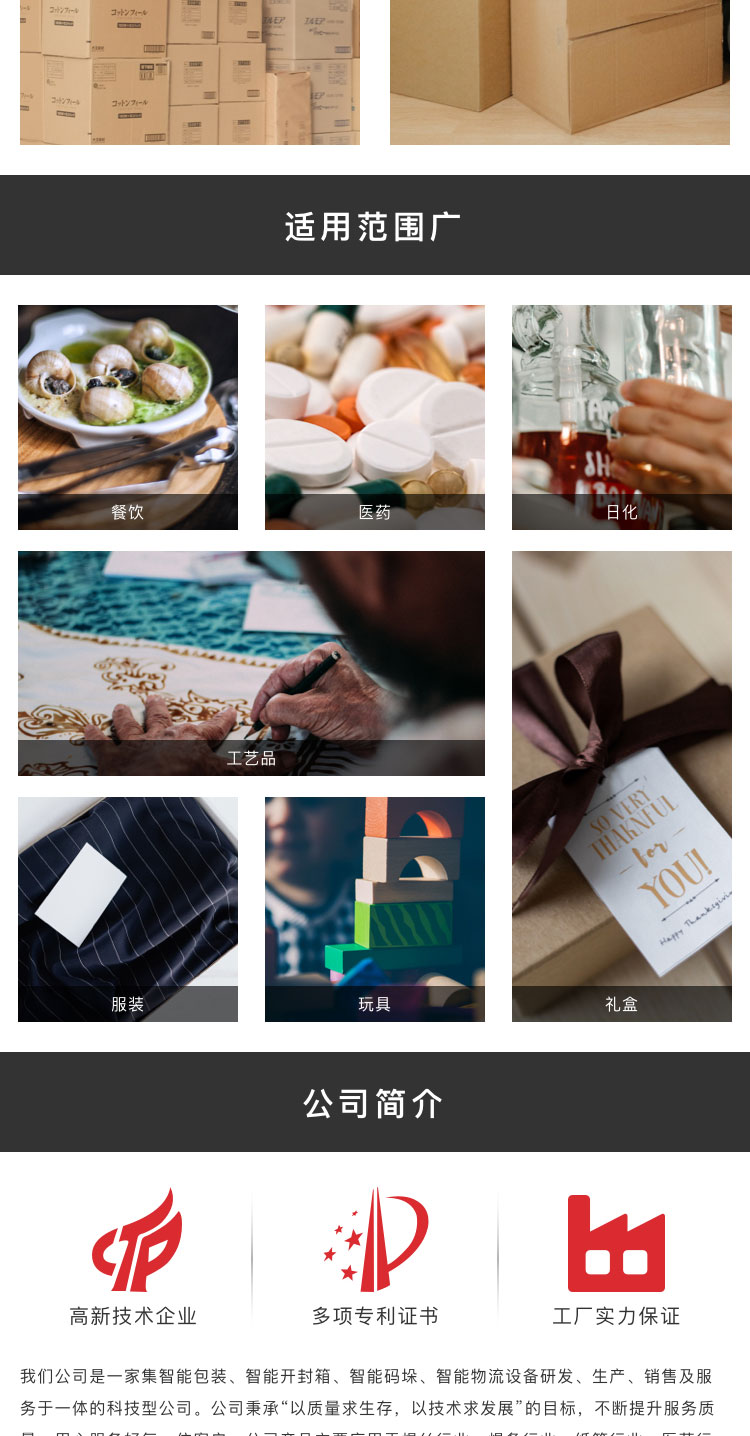 介紹:側(cè)帶驅(qū)動封箱機WRD-46,窄箱封箱機,可同時對紙箱進行上下“一”字型封箱,兩側(cè)四個馬達驅(qū)動皮帶自動校正、輸送紙箱,封箱時快速平穩(wěn),適用于較瘦較高之紙箱,臺面高度、紙箱寬度高度可自主調(diào)節(jié),簡單實用。 1.封箱機側(cè)帶驅(qū)動封箱機選用進口零部件,電器元件; 2.該款封箱機根據(jù)紙箱規(guī)格,手工調(diào)節(jié)寬度及高度; 3.該款封箱機適用于扁高型紙箱封箱,如風扇外箱、電腦機箱外箱、筆記本外箱等; 4.該款封箱機上下兩側(cè)皮帶驅(qū)動,上下封箱,經(jīng)濟,平穩(wěn)、快速; 5.該款封箱機配裝刀片防護裝置。避免操作時意外刺傷,可單機作業(yè),也可與自動化包裝流水線配套使用。